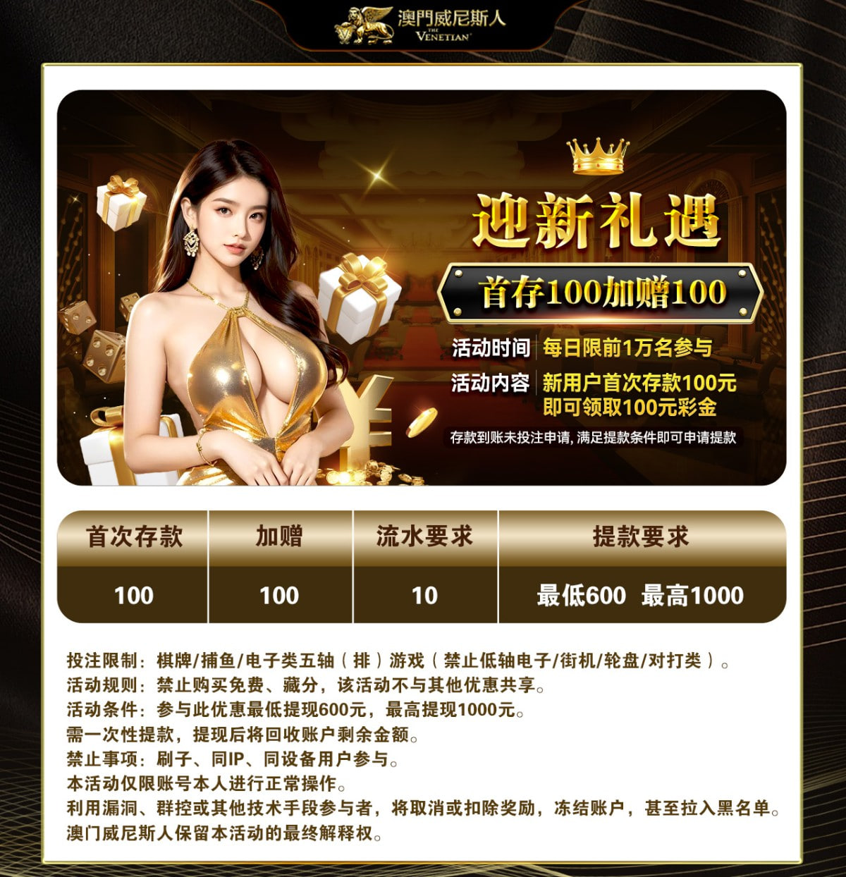 【威尼斯0066】⚜️100+100⚜️代码