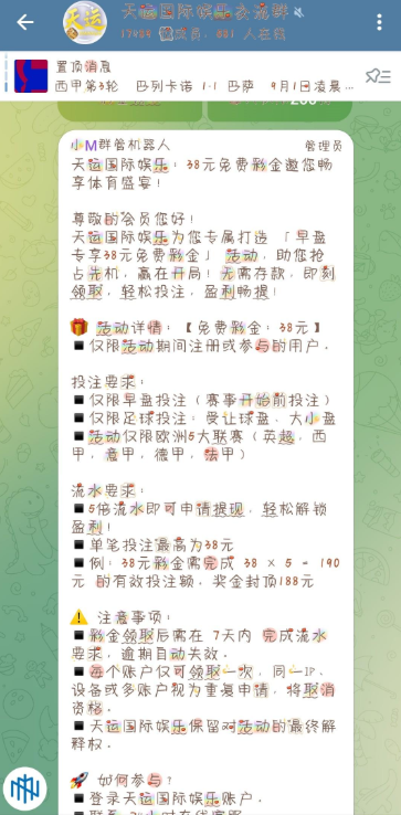 找客服领38彩金每天200个名额,群链接 https://t.me/tianyun66888