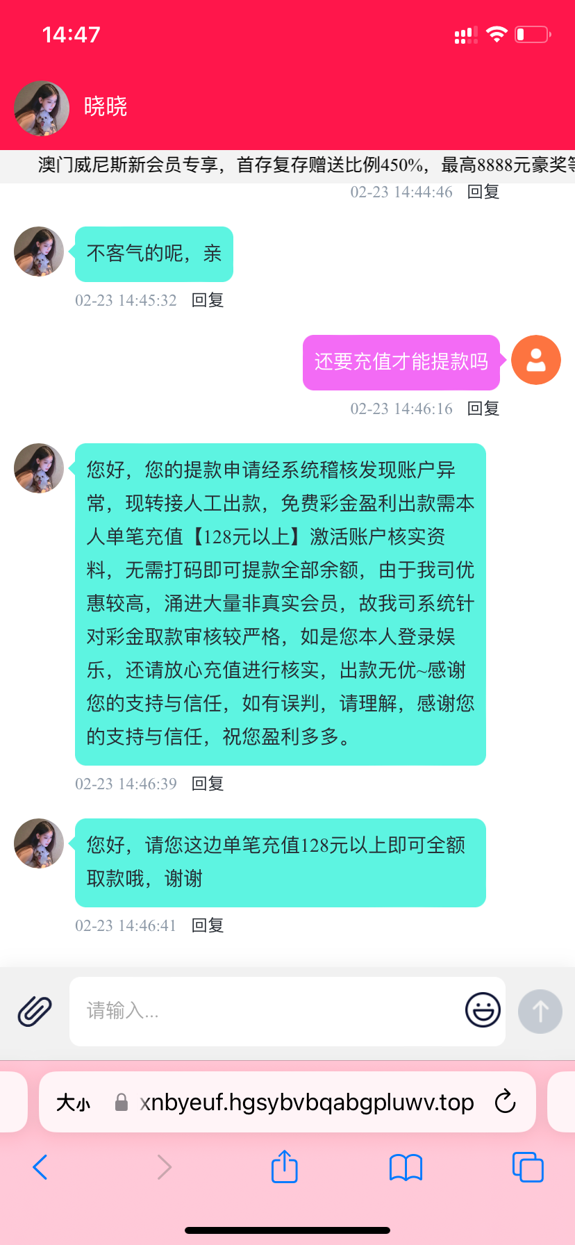 打电话送了288,然后提款就让我冲128就能全部提