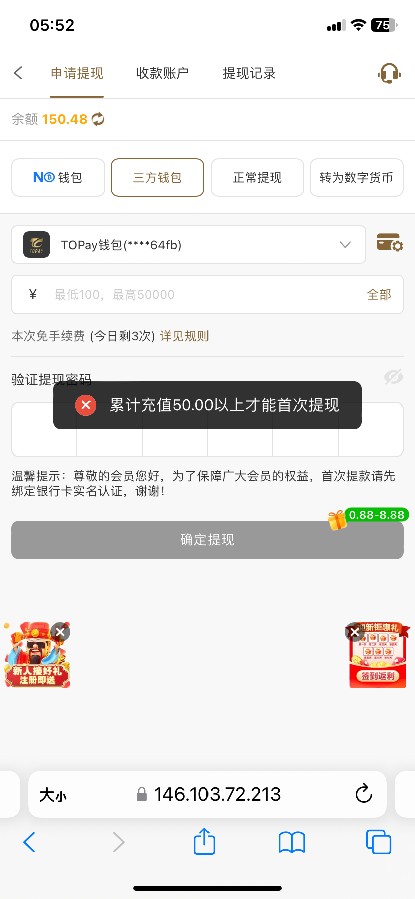 要充值才能提现
