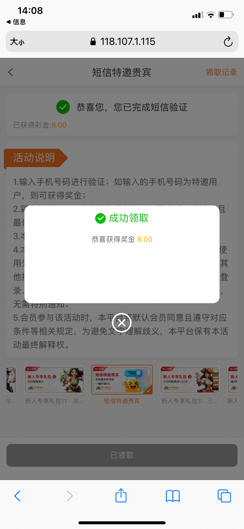 自助特邀彩金