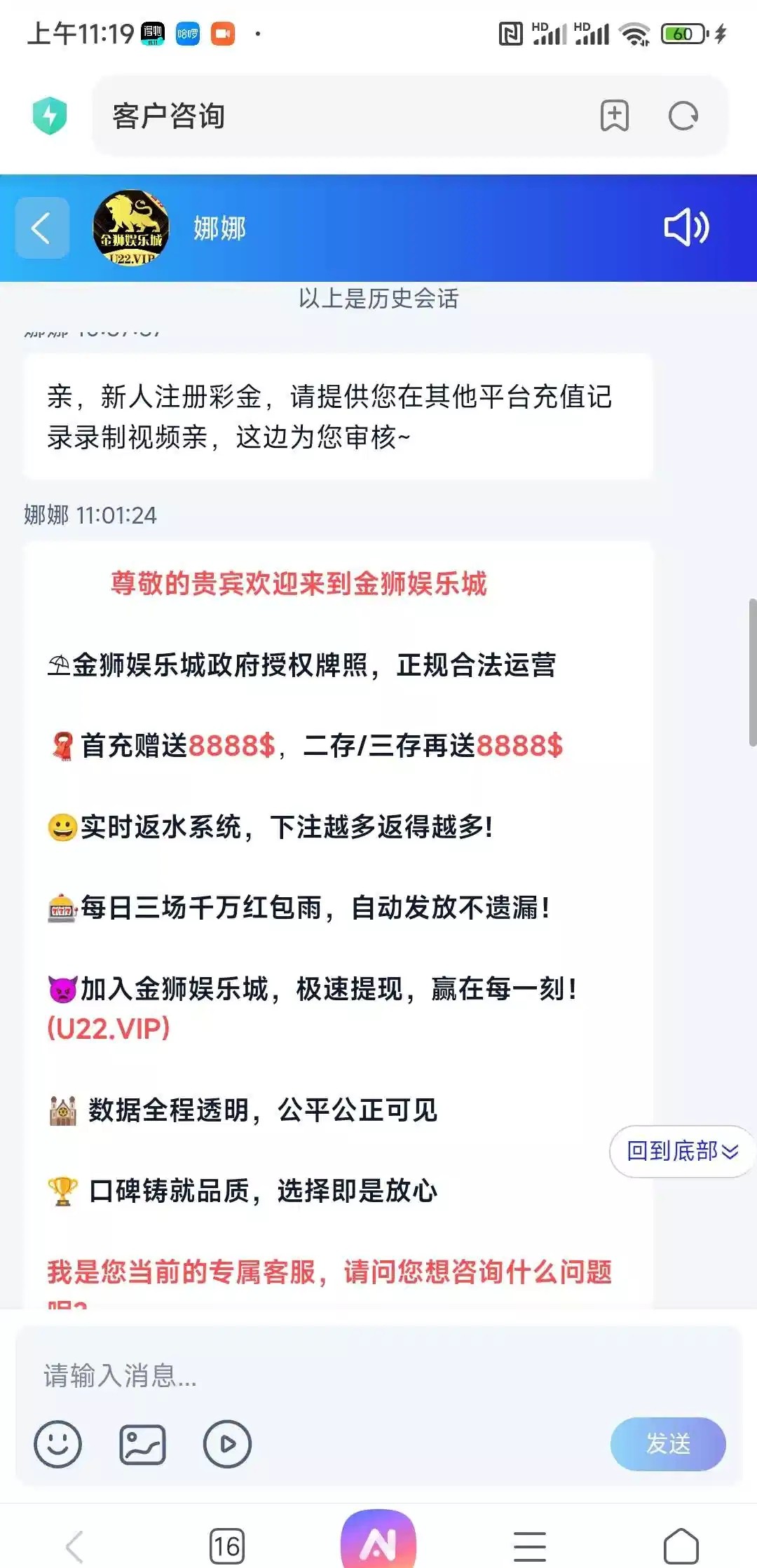 首发注册好找客服说申请注册彩金,会让提供其他平台充值记录之后给你送,我送了18没打出来链接u22.vip