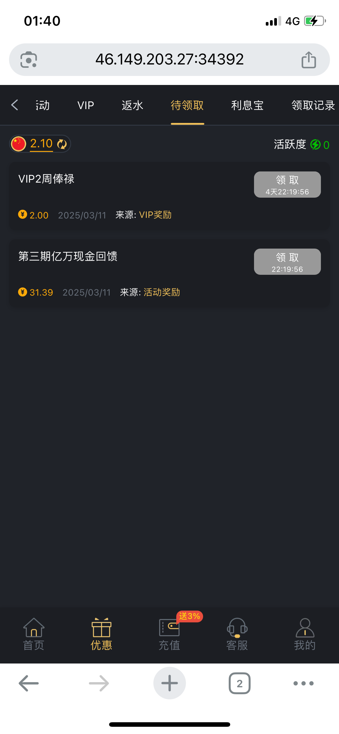 注册充值过的老哥可以领 没充值过的可以登陆看看有没有神秘地址 http://392.com