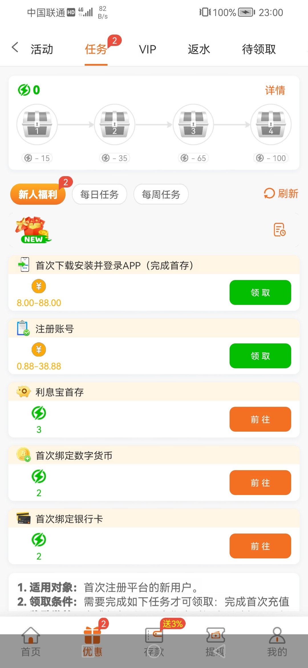 优惠→任务→自助领取即可