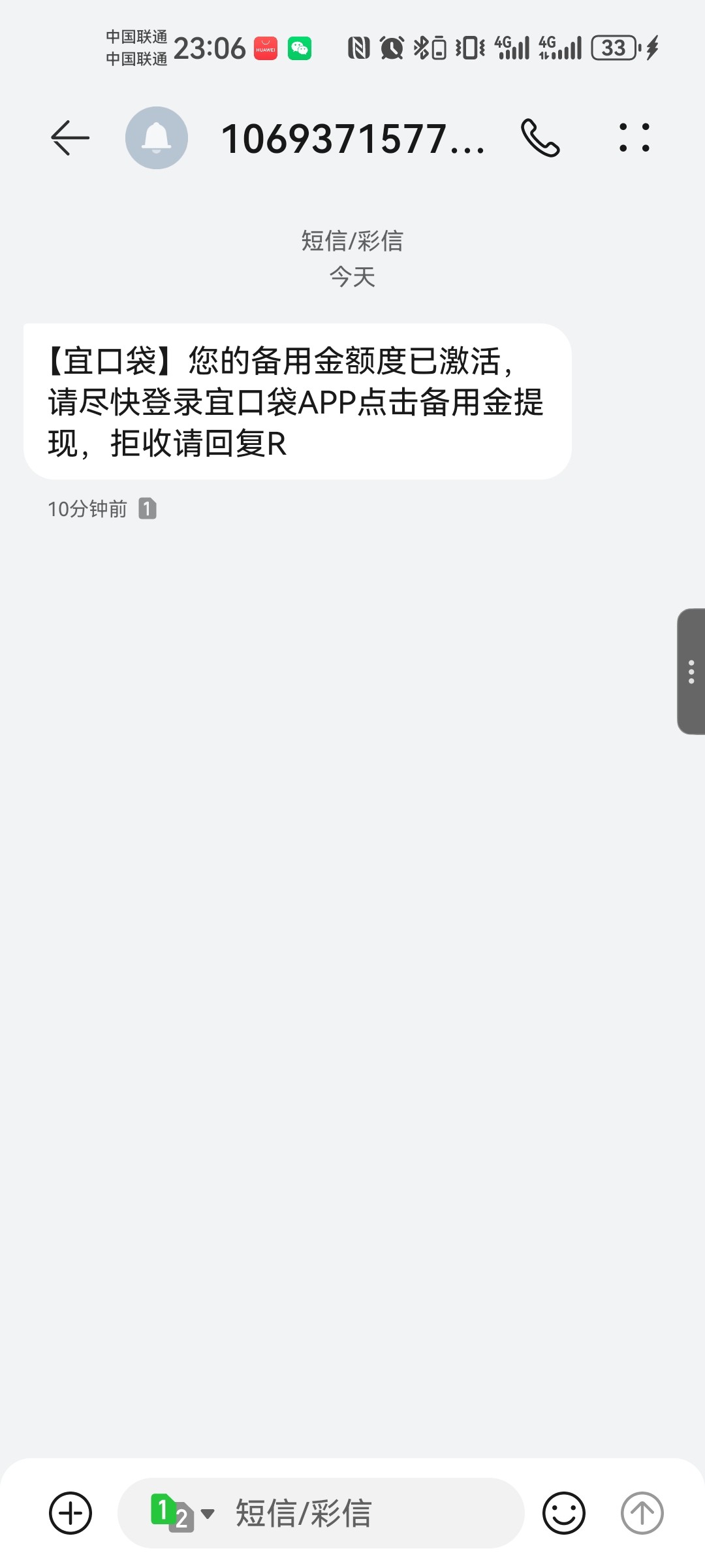 第二天就收到短信说有一比备用金激活了