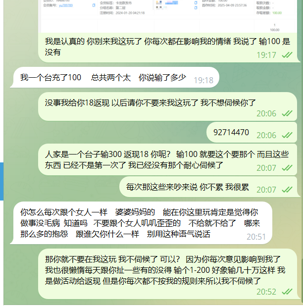 返现按我的规则来接受不了可以不玩 我不强求任何人在我这玩!