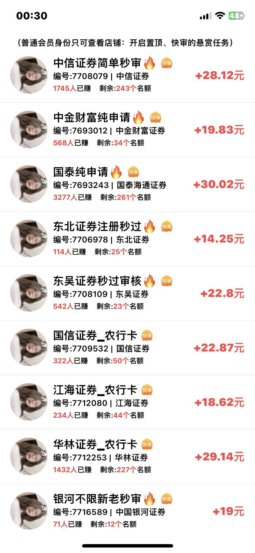 证劵农行卡,去赏金软件接单去做,开户能开十几个一个几十块,推荐