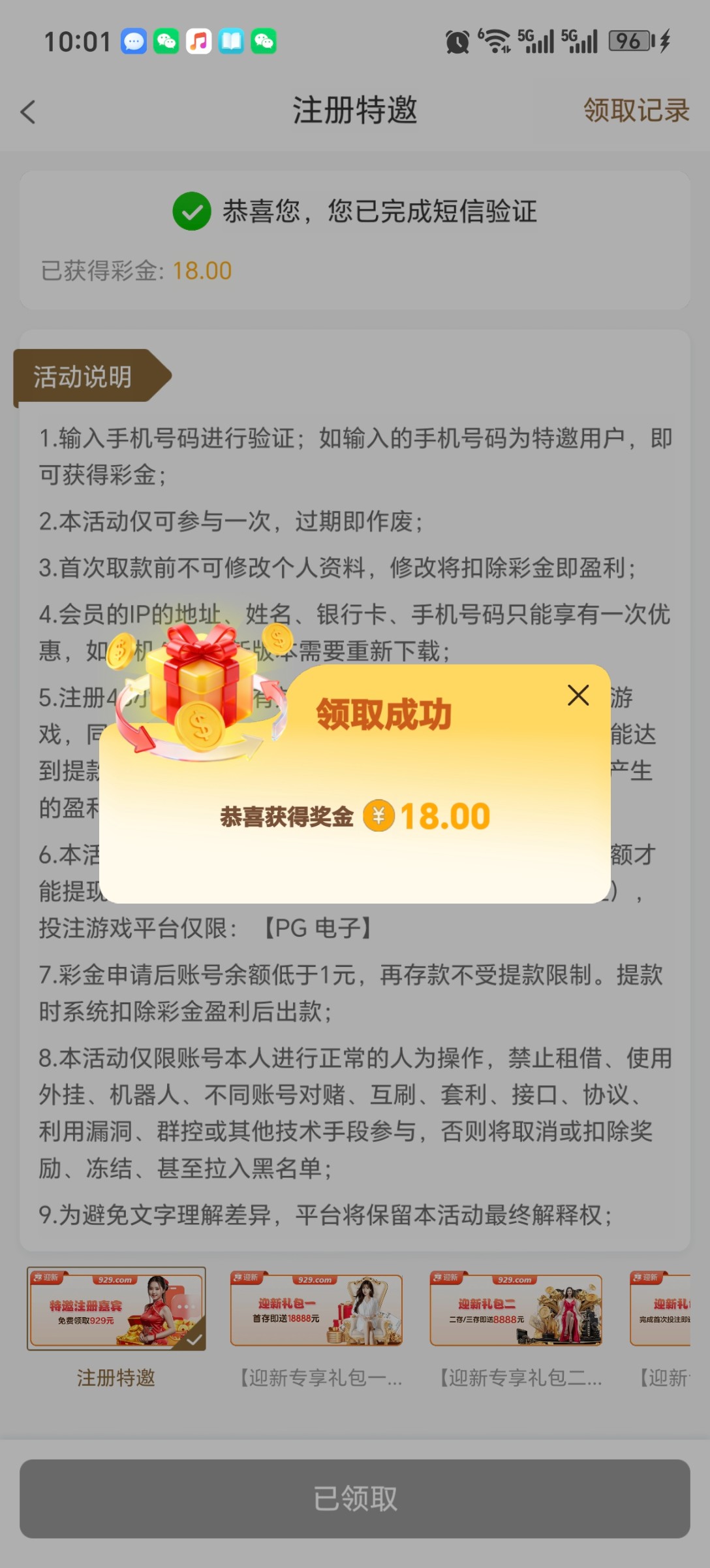 我是收到短信的,两张卡都收到过,没有收到的可以去碰瓷一下试试,哈哈祝兄弟们发财
